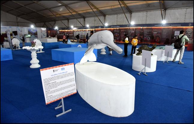 A replica of the Ganges River dolphinknown as the “Tiger of the Ganges” stands proudly in the pavilion showcasing local wildlife.